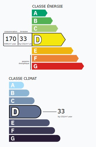 - 33 kgCO2/m²/an : Classé D