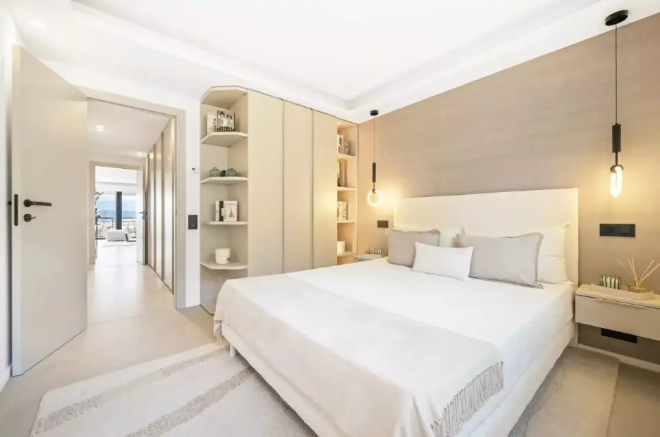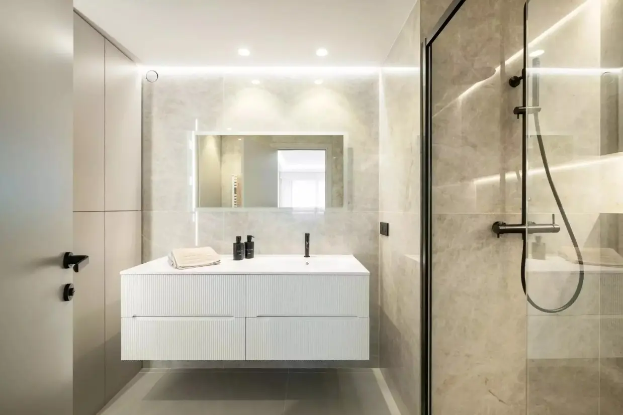 L’appartement propose deux suites, chacune dotée de sa salle d’eau et de son W.C, offrant un confort digne d’un boutique hôtel. Les volumes sont harmonieux, les matériaux choisis avec soin, et chaque détail contribue à une sensation de bien‑être immédiate.