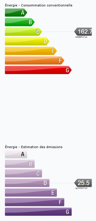 - 162,7 kWh/m²/an : Classé C