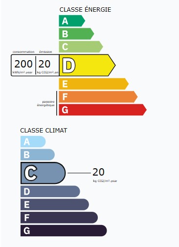 - 20 kgCO2/m²/an : Classé C